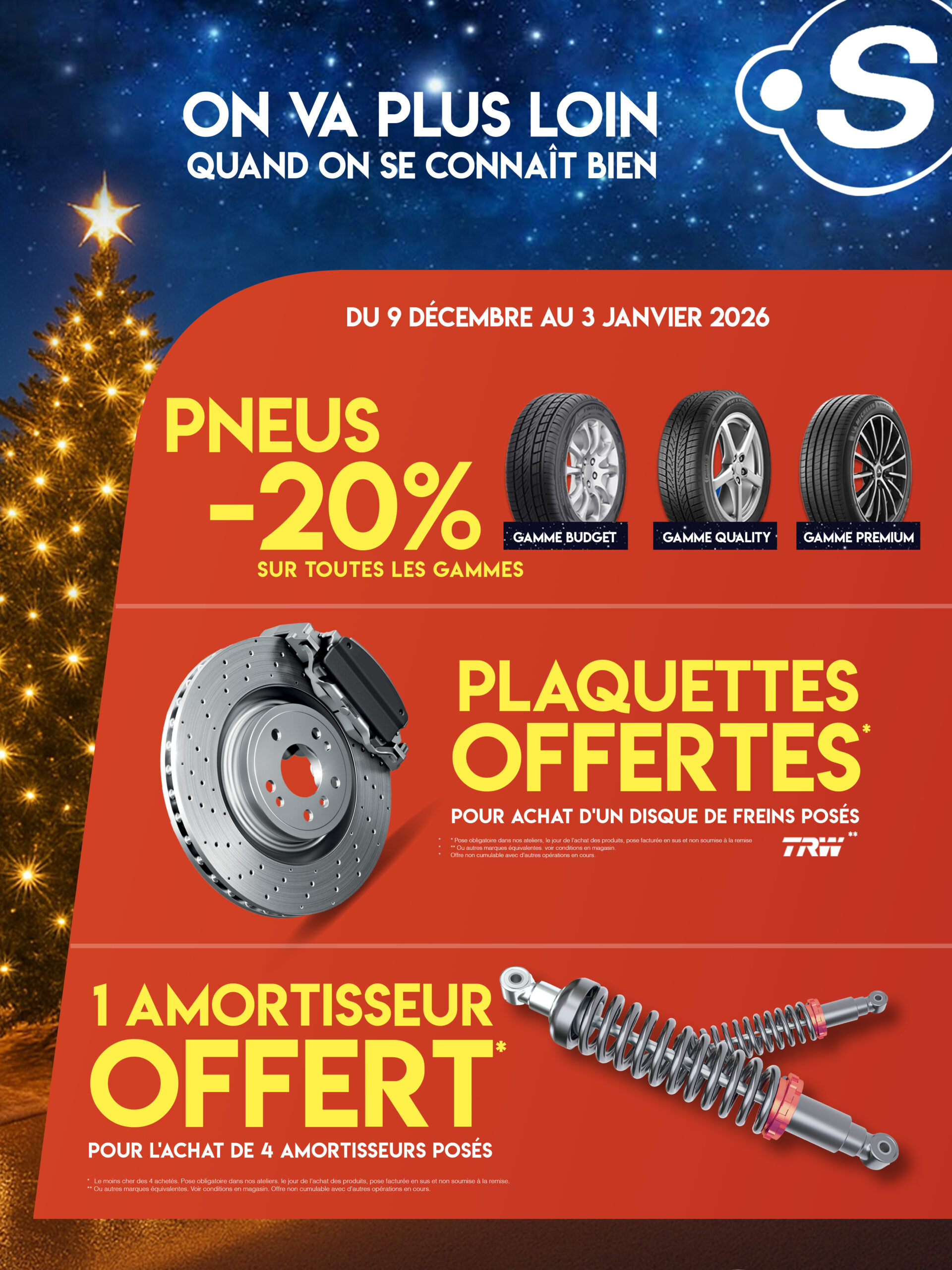 Préparez votre véhicule pour la nouvelle année : pneus –20 %, freinage optimisé et amortisseurs offerts.